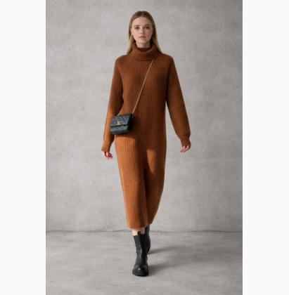 An effortless balance of minimalism and sophistication, this knitted midi dress is designed with a clean silhouette that moves with ease. The high neck and dropped shoulders create a relaxed, modern structure while the ribbed texture adds depth and understated detail. The straight cut falls naturally, offering a refined drape that elongates the figure without compromising on comfort. Designed with a flexible knit, it adapts seamlessly to different body shapes, making it a timeless piece that can be worn effortlessly during pregnancy, as well as before and after. Crafted from a heavyweight stretch knit, it delivers warmth and structure while maintaining a soft hand feel. The versatility of the design ensures it complements every stage of life, making it a wardrobe essential for all women. Style it with sleek boots for a directional everyday look or layer with outerwear for a polished cold-weather ensemble. A seasonless dress created for enduring simplicity and modern wearability. Size Clothes Length (cm / inch) Bust (cm / inch) Sleeve Length (cm / inch) XS 113 / 44.1 114 / 44.5 68.8 / 26.8 S 115 / 44.9 118 / 46.0 70 / 27.3 M 117 / 45.6 122 / 47.6 71.2 / 27.8 L 119 / 46.4 128 / 49.9 72.8 / 28.4 XL 121 / 47.2 132 / 51.5 74 / 28.9 2XL 123 / 48.0 136 / 53.0 75.2 / 29.3