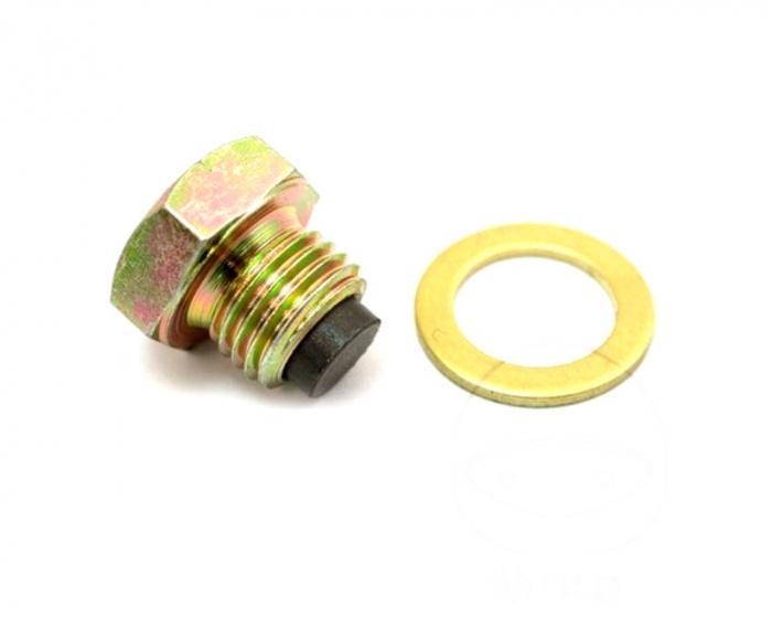 Magnet- Öl-Ablassschraube mit Dichtring Magnet- Öl-Ablassschrauben sammeln den metallischen Abrieb am Magneten und bewahren so den Motor vor übermäßigen Verschleiss ! Nicht passend für Triumph Tiger 800 (Innensechskant) Preiseinheit: 1 Stück für Honda XRV 750 Africa Twin RD04 1990-1992 Technische Daten: Typ :   Ölablassschrauben Gewinde :   M14 x 1.5 Durchmesser :   14 mm Länge :   19 mm Kopf :   Sechskantkopf Antrieb :   Sechskant Material :   Stahl Güte :   Keine Güteklasse Dichtring/Unterlegscheibe :   Kupfer Besonderheit :   magnetisch