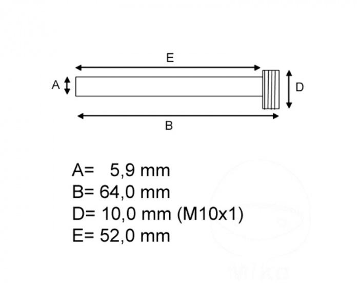 Gleitstift-Satz Tourmax Made in Japan Achtung: Bei einer Doppelscheibe bitte 2 x bestellen! Preiseinheit: 1 Satz für Honda XRV 750 Africa Twin RD04 1990-1992 hinten Technische Daten: Befestigung :   Gewinde M10 x 1.00 Schaftdurchmesser :   5.9 mm Gesamtlänge :   64.0 mm Schaftlänge :   52.0 mm