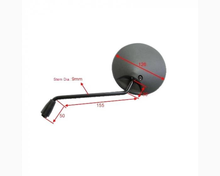 JMP Kunststoffspiegel ohne E-Prüfzeichen - schwarz - Kopf rund Ø 125 mm - Stange 10 mm - Gewinde 10 mm rechts - verkleinernd Preiseinheit: 1 Stück für Honda XL 600 V Transalp PD06 1987-1996 Technische Daten: Spiegeltyp :   Stangenspiegel Befestigung :   M10 rechts Spiegelkopfform :   rund Spiegelkopfdurchmesser :   125 mm Anbauseite :   links     rechts Gesamtbreite :   200 mm Farbe :   schwarz Material :   Kunststoff mit Blinker :   Nein e-geprüft :   Nein