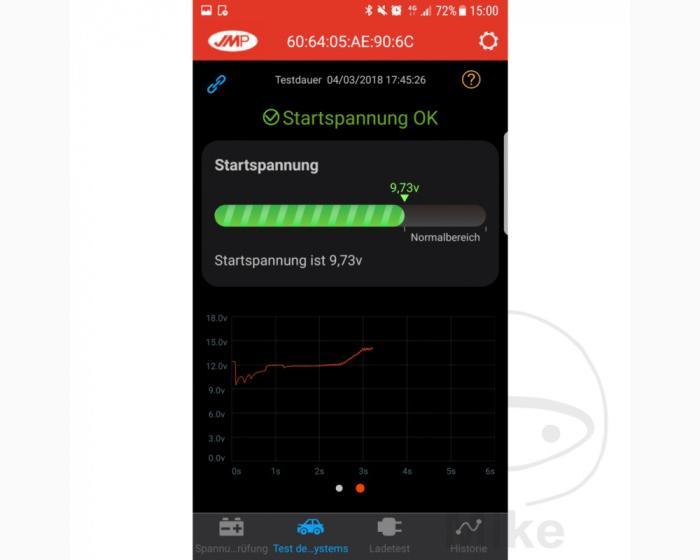 JMP Batterie Monitor II Batterieüberwachung mit dem Smartphone Mit dem JMP Batterie Monitor II und der neuen und kostenfreien Apple- oder Android-App „ JMP BatteryMonitor II“ sind Sie in der Lage, den Ladezustand Ihrer Batterie schnell und einfach zu kontrollieren. Nur bei einem beständigen, positiven Ladezustand der Batterie ist auch die volle Kapazität und Nutzbarkeit gewährleistet. Der positive Ladezustand verhindert zudem eine eventuelle frühzeitige Schädigung bzw. einen Ausfall der Batterie. Durch die kontinuierliche Aufzeichnung wird der Ladezustand der Batterie während Fahrten erfasst und lässt sich auch später noch aufrufen. Die Datei mit den Daten lässt sich per Email vom Smartphone versenden und in Excel anzeigen. So kann man schnell erkennen wo die Ladespannung eingebrochen ist oder zu hoch war. Darüber ist ein defekter Regler schnell zu erkennen. Außerdem können mit der neuen App auch Startvorgänge (Anlasser, Kabelverbindungen, usw.) und Ladevorgänge (Lichtmaschine, Kabel, usw.) genau überprüft werden. Das erspart im Problemfall lange Fehlersuchen. Bei niedrigem Batteriestand oder anderen Problemen kann je nach Einstellung in den App-Optionen eine Benachrichtigung den Fahrer warnen. Nach dem einfachen Anschluss mittels Ringösen an der Batterie und dem Herunterladen der neuen Android- oder Apple-App, kann der aktuelle Spannungswert abgerufen werden. Der Sender ist für 6 V und 12 V Batterien verwendbar. Die Reichweite liegt bei ca. 10 Metern. Die Verbindung erfolgt per Bluetooth. (Erst ab Bluetooth 4.0; z.B. ab iPhone 4s, iPad3 oder iPod Touch 5) Bitte beachten Sie: Für den neuen JMP Batteriemonitor II wird auch die neue App JMP BatteryMonitor II“ benötigt! Bei Unterschreitung der Mindestspannung wird auf ein baldiges Nachladen der Batterie hingewiesen. - Überwachung von 6 und 12 Volt möglich - Einfache Befestigung durch Ringösen an der Batterie - Stromverbrauch nur ca. 2 ma - Bei Verpolung entsteht kein Schaden am Sender oder der Batterie - Kostenfreie App im Apple App Store oder im Google Play Store unter JMP Battery Monitor II herunterladen - Spannungsaufzeichnung auch während der Fahrt. Ergebnis per Email verschickbar. Anzeige der Datei in Excel möglich. Preiseinheit: 1 Stück für Honda XL 600 V Transalp PD10 1997-2000