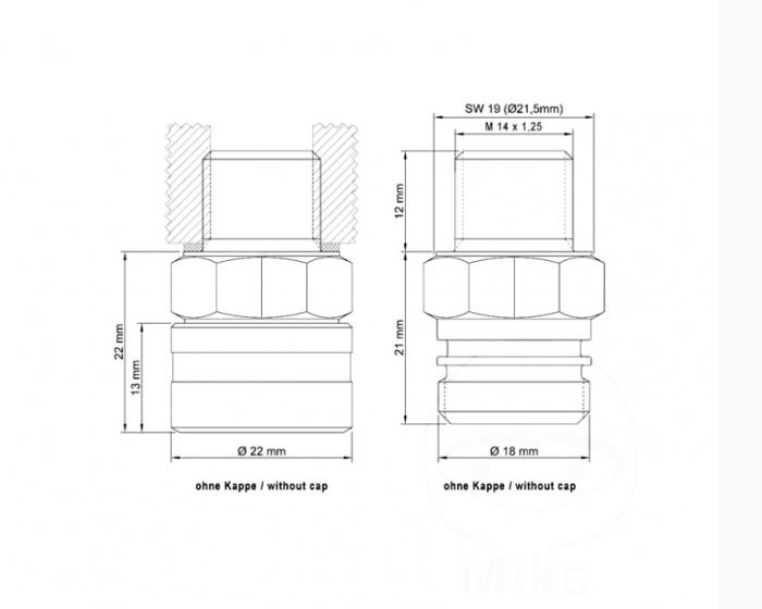 Das Stahlbus®-Ölablassventil wird einfach gegen die vorhandene Ölablassschraube ausgetauscht. Beim Ölwechsel schrauben Sie die Schutzkappe ab und stecken das Schlauchanschlußstück per Schnellverschluss auf. Erst wenn dieser arretiert ist, öffnet sich das Ventil und das Öl kann in den bereitgestellten Behälter abgelassen werden. Beim Lösen des Schlauchanschlusses schließt das Ventil selbsttätig und Sie müssen nur noch die Schutzkappe wieder aufdrehen Die Vorteile auf einen Blick: • Kein Kontakt mit Öl • Einfache Handhabung durch Schnellverschluss • Ablassschraube kann nicht verloren gehen • Keine Verbrennungsgefahr durch heißes Öl • Dichtungswechsel ist nicht nötig • Ölwannengewinde wird geschont • Doppelte Auslaufsicherung (Schutzkappe und Ventil) • Anschluss an Absauggerät möglich • Dosiertes Ablassen zur Probeentnahme oder bei Überfüllung • Schutzkappe verliersicher durch O-Ring • Ölwechsel ohne Werkzeug So macht der Ölwechsel Spaß! Lieferumfang: - Ventilkörper, CNC Präzisionsdrehteil aus hochwertigem Stahl - Kupfer-Dichtung - Schlauchanschlußstück, CNC Präzisionsdrehteil aus hochwertigem Stahl - Hochwertiger Schlauch 40cm lang - Schutzkappe aus eloxiertem Aluminium - Bebilderte Bedienungsanleitung Nicht passend für Triumph Tiger 800 (Innensechskant) Preiseinheit: 1 Satz für Honda XL 650 V Transalp RD10 2000-2001 Technische Daten: Typ :   Ölablassschrauben Gewinde :   M14 x 1.5 Durchmesser :   14 mm Länge :   19 mm Kopf :   Sechskantkopf Antrieb :   Sechskant Material :   Stahl Güte :   Keine Güteklasse Dichtring/Unterlegscheibe :   Kupfer Besonderheit :   Mit Ventil