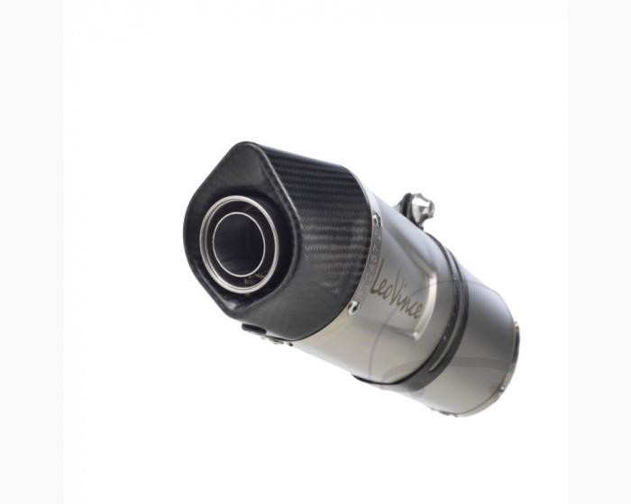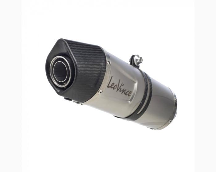 LeoVince LV-ONE aus Edelstahl im Titanlook II Sonorer Klang, Leistung und edles Design. Ein Schalldämpfer, der die klassischen Stilelemente dieses traditionellen italienischen Herstellers perfekt kombiniert mit ‘Touch‘ des Modernen. - Die Ummantelung besteht aus einer sandgestrahlten Edelstahl-Hülle, die den so begehrten und eleganten ‘Titan-Look‘ bewirkt - Er ist enorm schlank und schlagfest. - Der ovale Querschnitt mit den eckigen Fluchtlinien dazu gibt ihm eine seltene Kompaktheit. Alle Schweißverbindungen am Schalldämpfer erfolgen im TIG-Verfahren. Die Endkappe - und das ist eine echte Neuheit bei diesem Modell - besteht komplett aus hitzefestem und somit gegen enorm hohe Temperaturen widerstandsfähigem Carbon und hat eine asymmetrische und dadurch aggressive Formgebung. Aus Carbon ist ebenfalls die Rahmenhalterung des Schalldämpfers. Preiseinheit: 1 Stück für Honda XL 700 VA Transalp ABS RD15 2011-2013