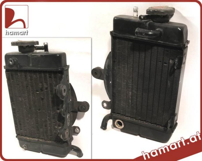 Kühler rechts. Allgemein schöner Zustand mit normalen Gebrauchsspuren. Das Gebrauchtteil wird wie abgebildet geliefert, Teilenummern dienen nur als Vergleich: 19011-MAB-621 für Honda XL600V Transalp PD06 1987-1996